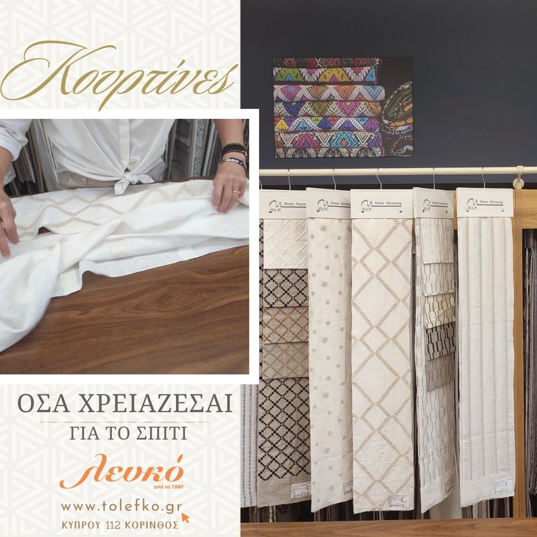 At Lefko shop you will find a huge range of fabrics, linens and bedding for your home and business, while our experienced staff and external partners will help you create the space you dream of. The specialized and experienced tailoring shop of Lefko in Corinth undertakes to manufacture the products as you wish so that they fit perfectly into your space. We will help you choose the right fabrics for curtains, shades or covers, and we will take care of the installation on site. In addition, we install LVT vinyl flooring, Spaghetti PVC floors, artificial grass, insulating window films, we apply carpets or rugs to your measurements in corridors and stairs. Our services include measuring your home or business space, always following your own wishes.