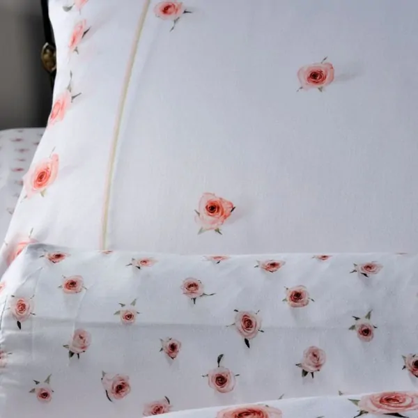 Color: White, pink floral roses
