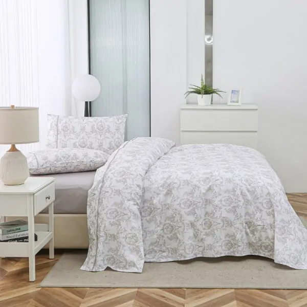 Modern bed sheets made of 100% Cotton Satin 220 thread count. They are made of high quality cotton satin worsted yarns. This is an elegant set of sheets resistant to daily use and time. Refresh your bedroom with new designs and wonderful shades.