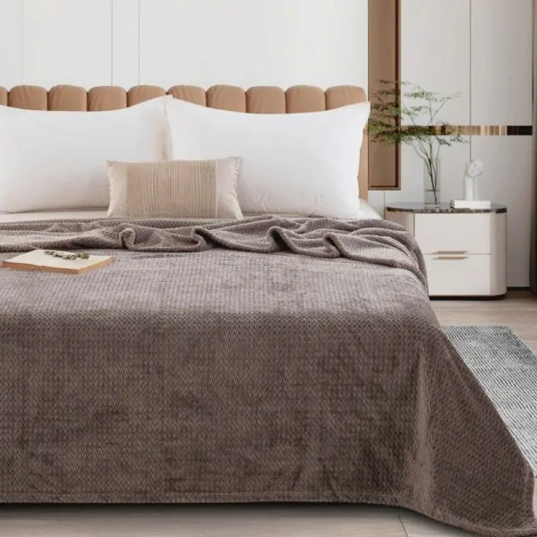 Soft blanket made of excellent quality yarns. Ideal for your bedroom, but also for your sofa, as it is available in 2 dimensions. Elegant design and shade in the color of the cigar, it will add to the decoration of your room!