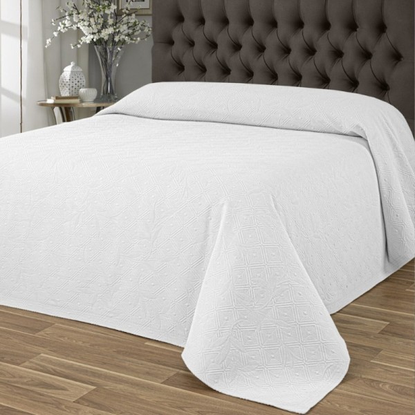 Quality blanket with a distinctive design made of 100% cotton. Ideal for your bedroom, for the warmer months. Elegant design and white color that fits any decor. In three sizes, double, queen and giant.