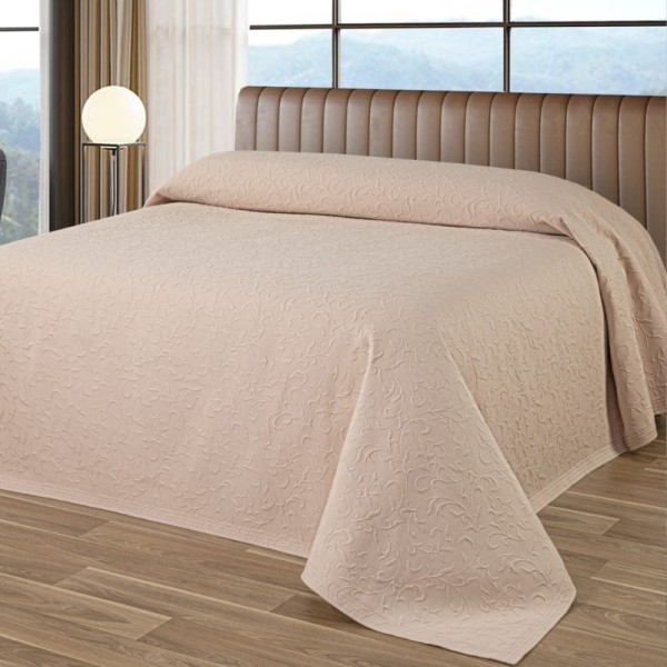 Quality blanket with a distinctive design made of 100% cotton. Ideal for your bedroom, for the warmer months. Elegant design and nude shade that fits any decor. In three sizes, double, queen and giant.