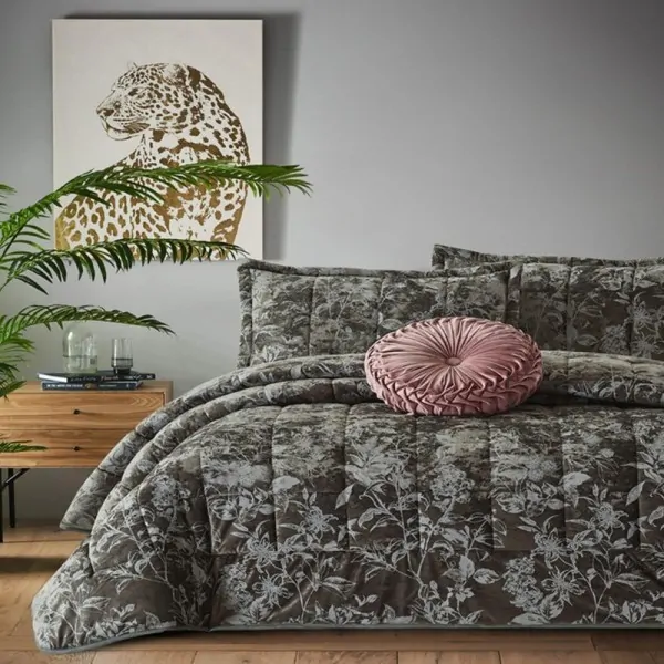 Lovely quilt in shades of gray with a floral pattern and quilted stitching. With a Dutch velvet feel to give the warmth you want in your bedroom. This particular collection stands out for its fine designs as well as for its elegant shades. Give harmony and a feeling of luxury to your bedroom with the comforter that will stand out.
