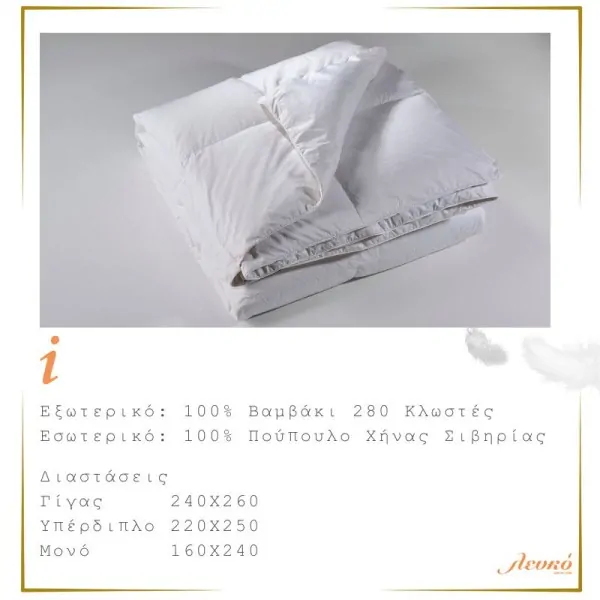 Down comforter made of Siberian geese from the quality company Down Town that perfectly warms in three different dimensions, single, extra double, giant.