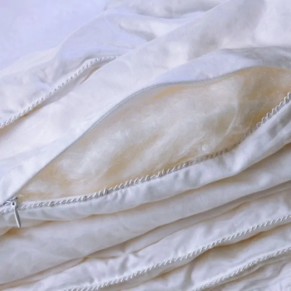 Down Town created this luxurious bedroom comforter from Tussah silk, also known as wild silk. This silk fabric is made from the cocoons of wild silkworms, giving it a natural golden hue while being quite durable.