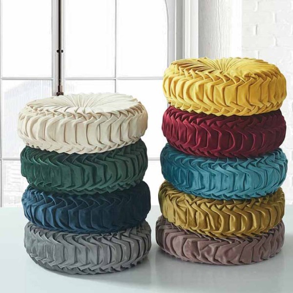 Impressive decorative Dutch Velvet round cushion. Extremely soft and velvety in texture with an original pleat design that gives elegance and style to any living room. The dutch velvet pillow offers the warmth your space needs in winter.