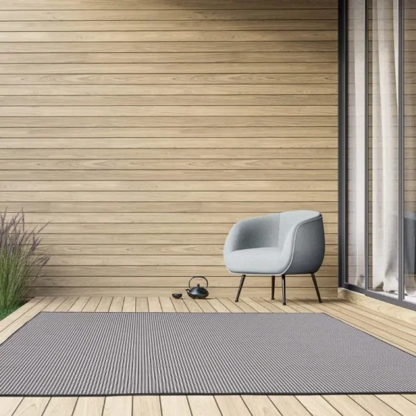 Maestro is a beautiful woven mat, durable, woven from synthetic yarns. It is stain-resistant, ideal for kitchens and living rooms. It goes well with minimal decoration. Because it does not include jute in its construction, it can be placed in indoor and outdoor spaces, such as terraces, gardens, pergolas, swimming pools.