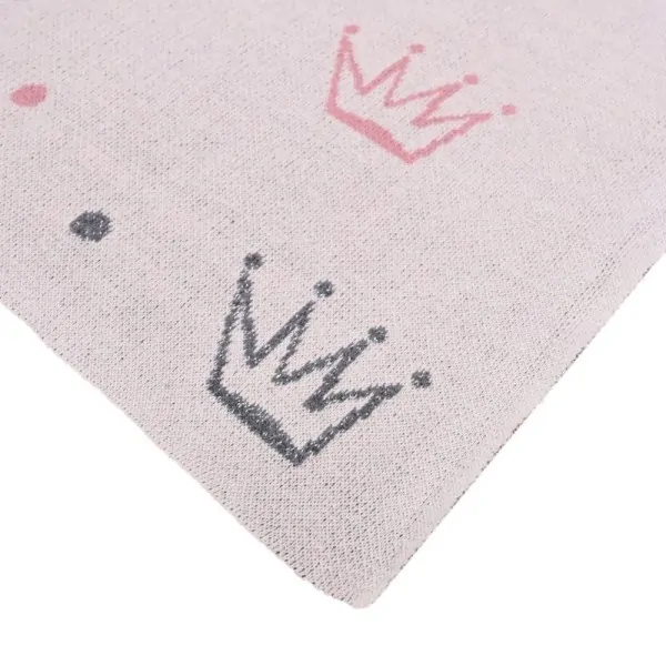 Beautifully knitted, breathable and extra soft 100% cotton baby blanket. In a joyful pattern with small pink and grey crowns! Ideal for tummy time, snuggle time and stroller walks with your baby! Wash at 40 degrees.