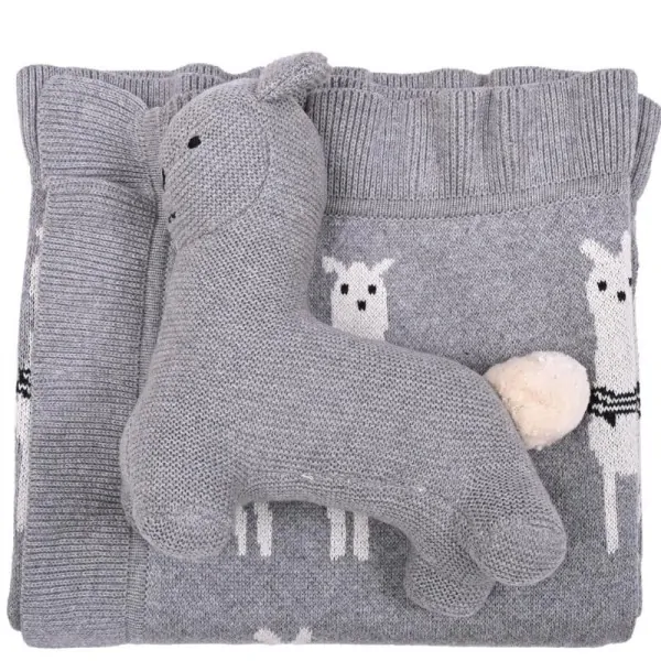 BABY BLANKET COTTON GREY WITH LAMA TOY