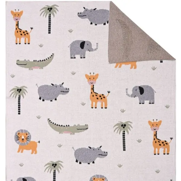 Beautifully knitted, breathable and extra soft 100% cotton baby blanket. In a joyful multi color pattern for both girls and boys with jungle animals! Ideal for tummy time, snuggle time and stroller walks with your baby! Wash at 40 degrees.