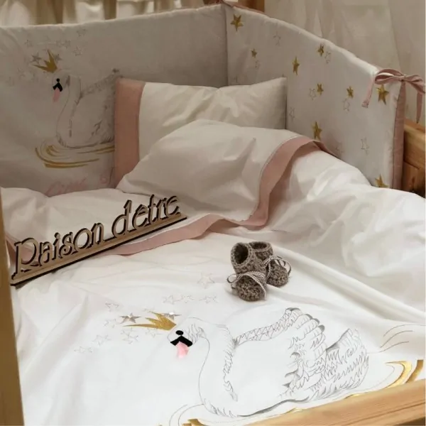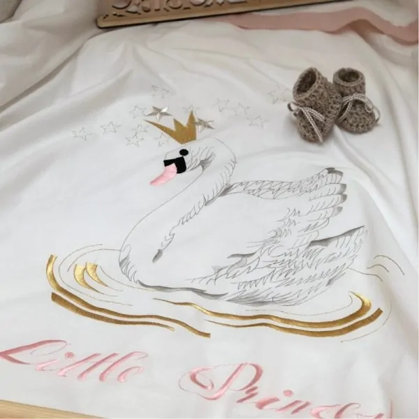 BABY CRIB SET SHEETS SWAN WITH A CROWN
