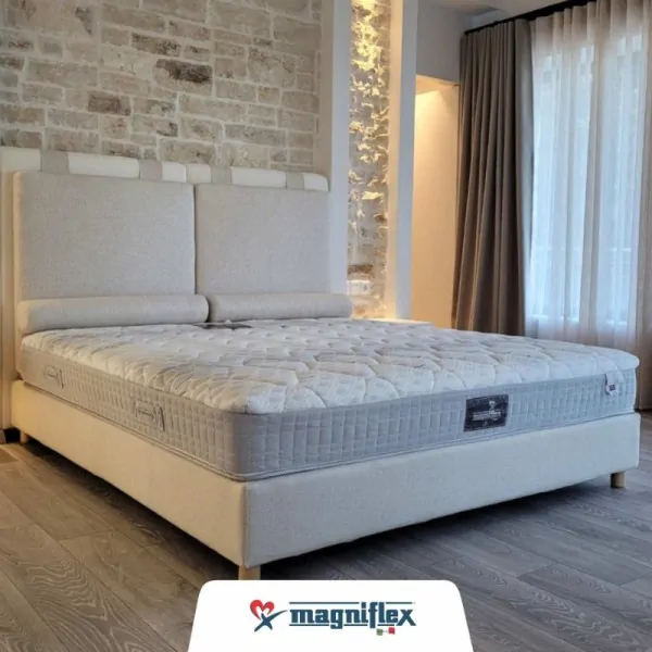 Magnistretch 10, from the Italian innovative company Magniflex, is created from innovative materials and is a technological achievement in the field of sleep. Guarantees excellent benefits and ideal support for the spine, certified by the University of Florence and the American Chiropractic Association. Magnistretch is designed to decompress the back, relaxing the muscular pains of the spine, while its surface materials regulate the micro-climate and breathability. 12 year quality guarantee!