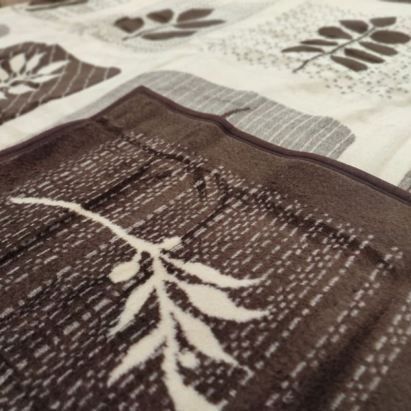 BLANKET QUEEN SIZE ACRYLIC BROWN LEAVES
