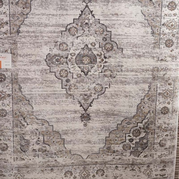 STOCK carpet, last piece, with shades of light gray and beige. Luxurious machine-made synthetic, from the Imperial Maharaja series with a classic design and timeless aesthetics. Certified with ISO 9001, antistatic, easy to clean, with indelible color, water-repellent.