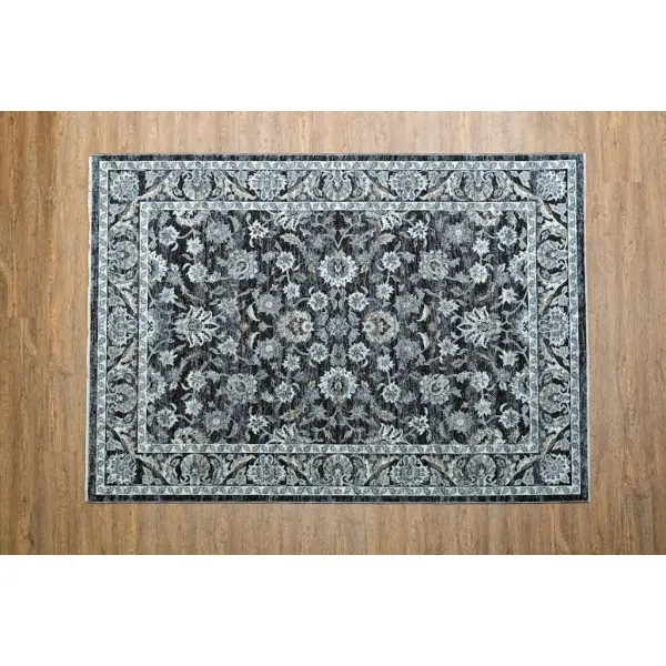 STOCK carpet, last piece, with shades of light gray and anthracite. Luxurious machine-made synthetic, from the Imperial Maharaja series with a classic design and timeless aesthetics. Certified with ISO 9001, antistatic, easy to clean, with indelible color, water-repellent.