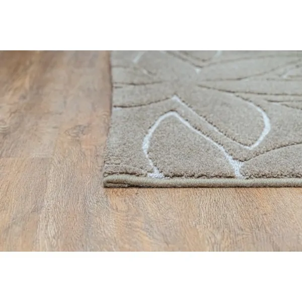 Brown - beige wool with flower pattern, machine carpet New Zealand