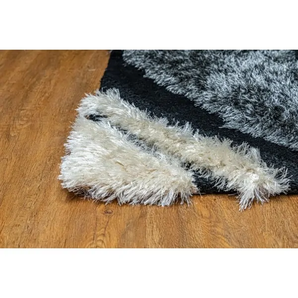 Handmade silk and wool rug from the Makis Tselios collection to ideally decorate the living room or bedroom. With a unique design of circles of gray, black, cream color. Unique STOCK piece in our collection from MAKIS TSELIOS.