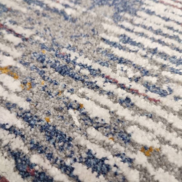 An exceptionally soft rug from the Neva series by Colore Colori, on offer, ready-made, cut to the dimensions of 200X255cm, perfect for any room! The soft grey, rusty red and blue colors that form vintage style stripes match with any decoration and create a soft minimal atmosphere. The rug is tested for harmful substances with the Oeko-Tex Standard 100 certificate and 11.HTR.94219 from the Hohenstein Institute. Antistatic, eco-friendly, stain-resistant, with antibacterial protection, easy to clean, and pleasant to walk on.