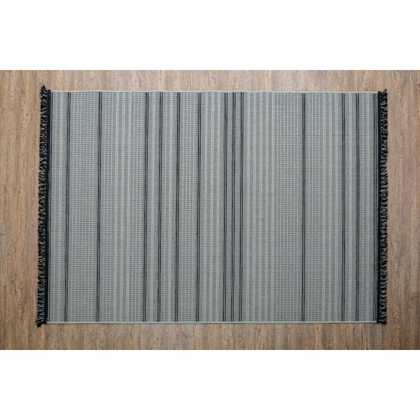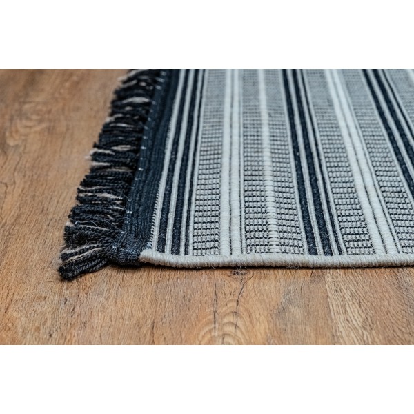 SYNTHETIC WICKER RUG BLACK- BEIGE STRIPES 18