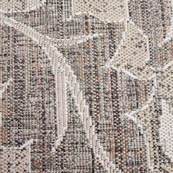 Summer synthetic rug with wicker weave in shades of beige, ecru, gray, with orange and green details that form large flowers, for boho decoration, without fringes. Synthetic wicker rugs fit all rooms, can be used in kitchens and dining rooms, are easy to clean and are also called 4 seasons. Dimensions 160X230cm, only 48 euros!