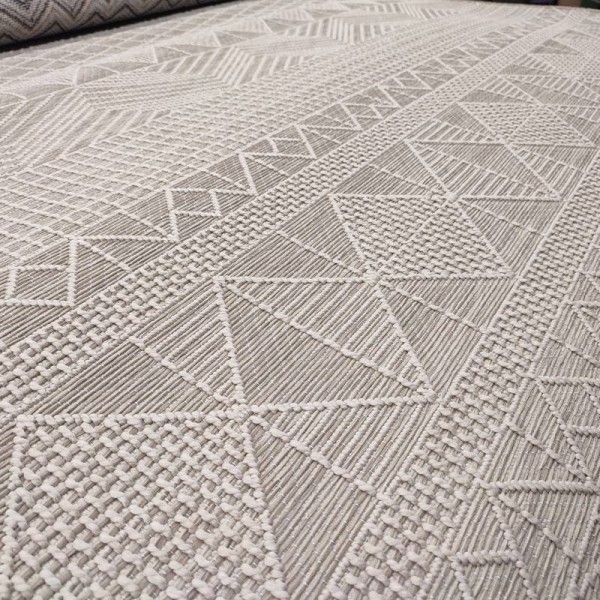 Summer synthetic rug with wicker weave in shades of ecru and beige that form various ethnic geometric patterns for boho decoration, without fringes Synthetic wicker rugs fit all rooms, can be used in kitchens and dining rooms, are easy to clean and are also called 4 seasons. Dimensions 160X230cm, only 48 euros!