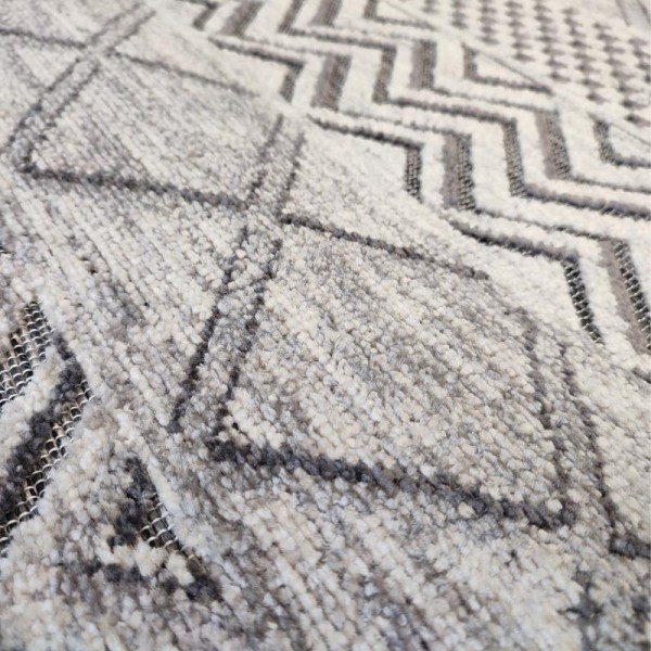 Summer synthetic runner rug with wicker weave in shades of ecru, beige, gray mix with alternative geometric patterns such as triangles, rhombuses, parallel lines, for boho decoration, without fringes. Synthetic wicker rugs fit all rooms, can be used in kitchens and dining rooms, are easy to clean and are also called 4 seasons. Dimensions 080X150cm, only 15 euros!