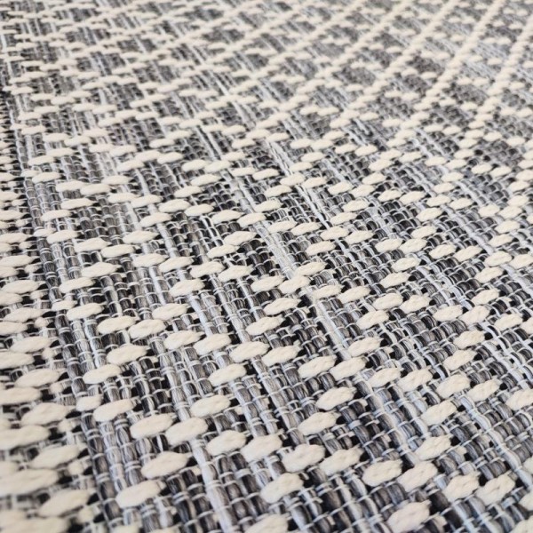 Summer synthetic runner rug with wicker weave in shades of gray, beige, black and with white geometric patterns such as rhombuses, for boho decoration, without fringes. Synthetic wicker rugs fit all rooms, can be used in kitchens and dining rooms, are easy to clean and are also called 4 seasons. Dimensions 080X150cm, only 15 euros!