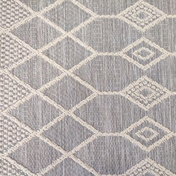 WICKER HALLWAY RUG ECRU GREY SQUARE DIAMONDS
