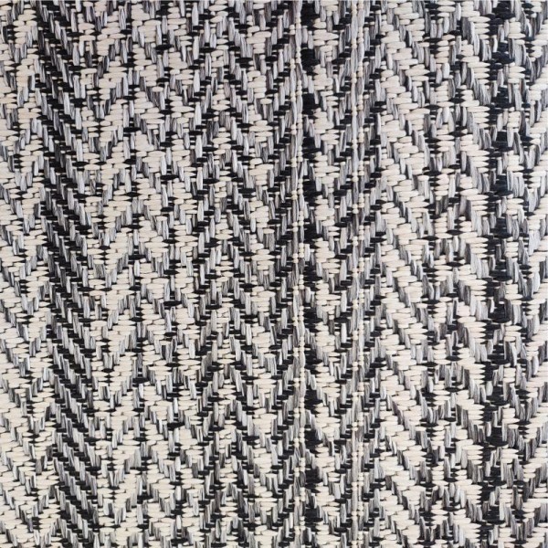Summer synthetic rug with wicker weave in shades of white, black, gray with an irregular stripe reminiscent of herringbone for boho decoration, without fringes. Synthetic wicker rugs fit all rooms. They can be used in kitchens and dining rooms, they are easy to clean and are also called 4 seasons. Dimensions 080X150cm, only 15 euros!