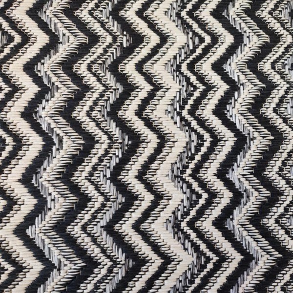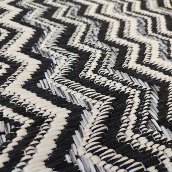 Summer synthetic runner rug with wicker weave in shades of black, white and gray, with a zig zag pattern, for boho decoration, without fringes. Synthetic wicker rugs fit all rooms, can be used in kitchens and dining rooms, are easy to clean and are also called 4 seasons. Dimensions 080X150cm, only 15 euros!