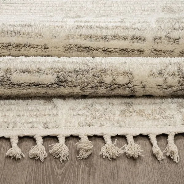 Gala rugs from New Plan can be described as embossed works of art in earth tones, soft, warm and elegant. Their modern fringes differentiate them from more classic rugs. It can be adjusted to the ideal dimensions of your space. It fits in every room and gives quality and aesthetic harmony.