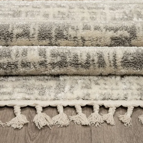 Gala rugs from New Plan can be described as embossed works of art in earth tones, soft, warm and elegant. Their modern fringes differentiate them from more classic rugs. It can be adjusted to the ideal dimensions of your space. It fits in every room and gives quality and aesthetic harmony.