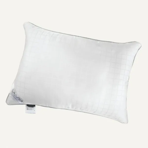 The Anti-allergic pillow by LaLuna is filled with specially treated fiber that provides a soft, feather-like feel, making it ideal for those allergic to natural down. It features a premium-quality outer fabric made of 100% combed cotton sateen with a 300-thread count. The pillow has antimicrobial and hypoallergenic properties that prevent odor formation. It helps maintain an ideal sleeping temperature and offers great comfort without causing sweating. Environmentally friendly fibers help the pillow retain its shape. This is a low-profile pillow with soft support, perfect for children or anyone who prefers sleeping on their stomach.