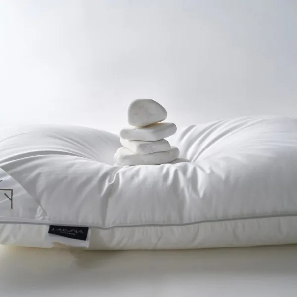 The airy, feather-light White goose pillow by LaLuna, made from goose down and feathers, has undergone a special anti-allergic treatment. By absorbing a large amount of moisture and trapping air, it creates the perfect sleeping temperature. Measuring 50x70cm, it is low in height and exceptionally soft, making it ideal for those who prefer to sleep on their stomach. The surface that comes into contact with the skin is made of high-quality 100% cotton Percale with a 233-thread count and is down-proof (impermeable to feathers).