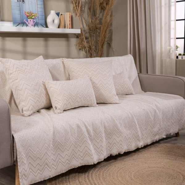 High-quality and aesthetically pleasing all season sofa throw made from Greek cotton fabric of Greek manufacture. Cotton is a particularly skin-friendly fabric, while the low polyester content makes the throw more elastic and durable over time. The cream PIACENZA throw comes in three sizes, for single to three-seater sofas from 150cm to 300cm in length. Please contact us if you require custom dimensions, as it can be made to order.