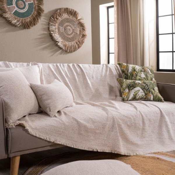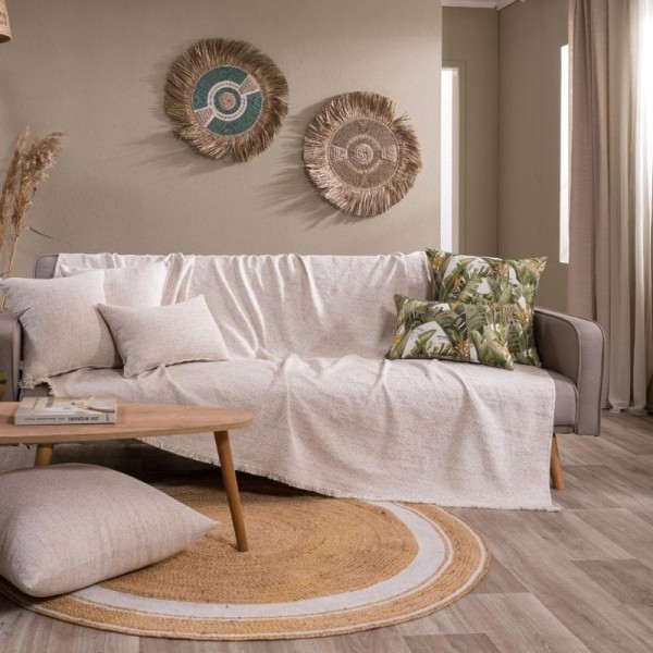 High-quality and aesthetically pleasing all season sofa throw made from Greek cotton fabric of Greek manufacture. Cotton is a particularly skin-friendly fabric, while the low polyester content makes the throw more elastic and durable over time. The cream TIVOLI throw comes in three sizes, for single to three-seater sofas from 150cm to 300cm in length. Please contact us if you require custom dimensions, as it can be made to order.