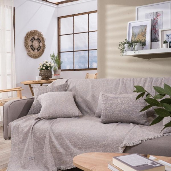 High-quality and aesthetically pleasing all season sofa throw made from Greek cotton fabric of Greek manufacture. Cotton is a particularly skin-friendly fabric, while the low polyester content makes the throw more elastic and durable over time. The grey beige TIVOLI throw comes in three sizes, for single to three-seater sofas from 150cm to 300cm in length. Please contact us if you require custom dimensions, as it can be made to order.