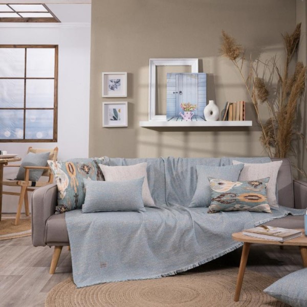 High-quality and aesthetically pleasing all season sofa throw made from Greek cotton fabric of Greek manufacture. Cotton is a particularly skin-friendly fabric, while the low polyester content makes the throw more elastic and durable over time. The blue TIVOLI throw comes in three sizes, for single to three-seater sofas from 150cm to 300cm in length. Please contact us if you require custom dimensions, as it can be made to order.