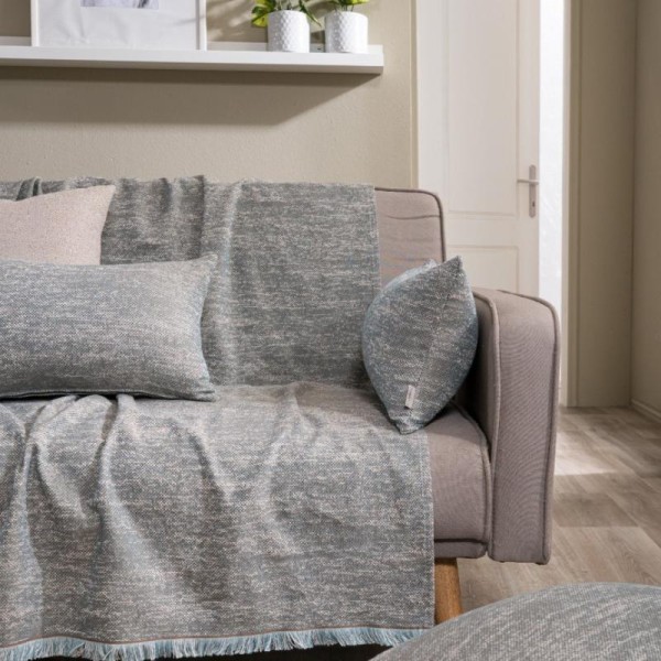 High-quality and aesthetically pleasing all season sofa throw made from Greek cotton fabric of Greek manufacture. Cotton is a particularly skin-friendly fabric, while the low polyester content makes the throw more elastic and durable over time. The grey blue TIVOLI throw comes in three sizes, for single to three-seater sofas from 150cm to 300cm in length. Please contact us if you require custom dimensions, as it can be made to order.