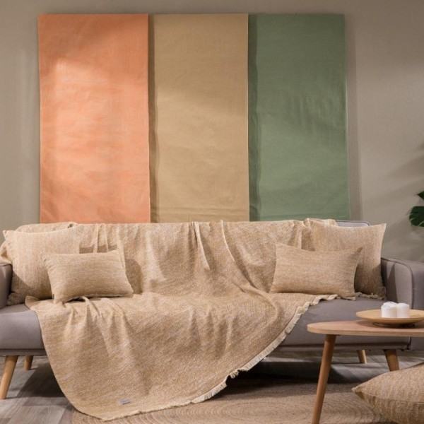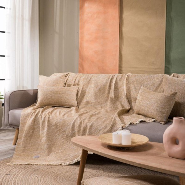 High-quality and aesthetically pleasing all season sofa throw made from Greek cotton fabric of Greek manufacture. Cotton is a particularly skin-friendly fabric, while the low polyester content makes the throw more elastic and durable over time. The beige brown TIVOLI throw comes in three sizes, for single to three-seater sofas from 150cm to 300cm in length. Please contact us if you require custom dimensions, as it can be made to order.