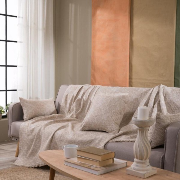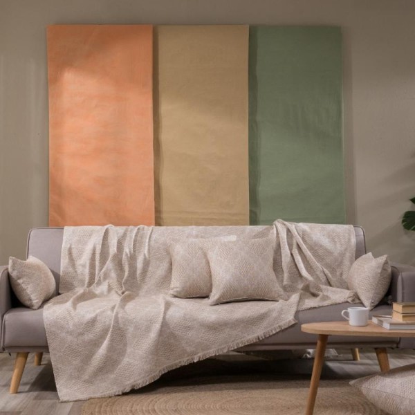 High-quality and aesthetically pleasing all season sofa throw made from Greek cotton fabric of Greek manufacture. Cotton is a particularly skin-friendly fabric, while the low polyester content makes the throw more elastic and durable over time. The beige TREVISO throw comes in three sizes, for single to three-seater sofas from 150cm to 300cm in length. Please contact us if you require custom dimensions, as it can be made to order.