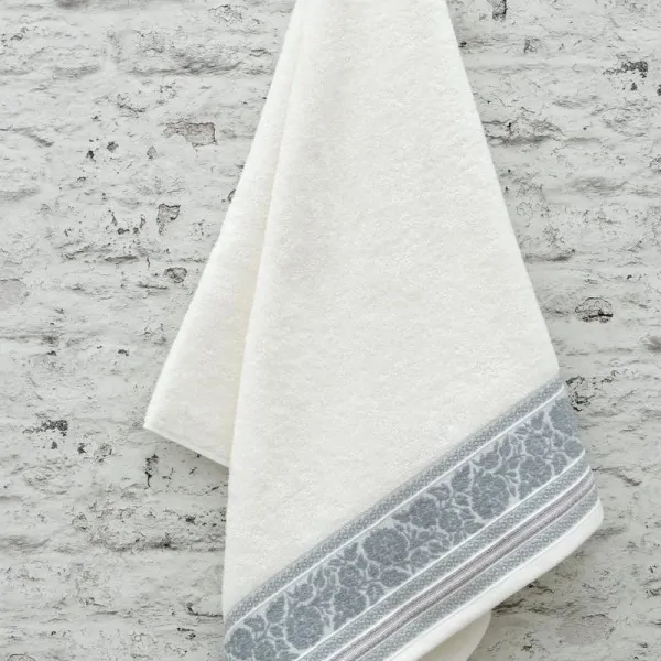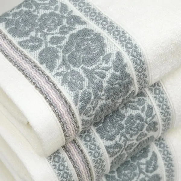 WHITE COTTON TOWELS WITH GREY ROSES