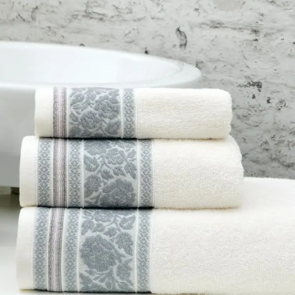 Towel set made of 100% cotton, 500gsm. Liolios Home's Monaco towels are soft and extra absorbent. They stand out for the wonderful texture as well as for the quality in their composition. Resistant to frequent washing with the color remaining unchanged. Hand, face and bath towels are available in the same design. It is a timeless and ideal choice of monochrome towel with an embossed design of grey roses on the finish.