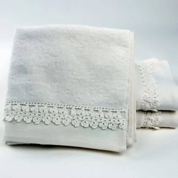 Handmade towel set made of 100% cotton terry crochet, 500gsm. Liolios Home's Small Flower towels are soft and extra absorbent. They stand out for the wonderful texture as well as for the quality in their composition. Resistant to frequent washing with the color remaining unchanged. Hand, face and bath towels are available in the same design. It is a timeless and ideal choice of monochrome towel with a subtle embossed design and a crochet pattern on the finish.