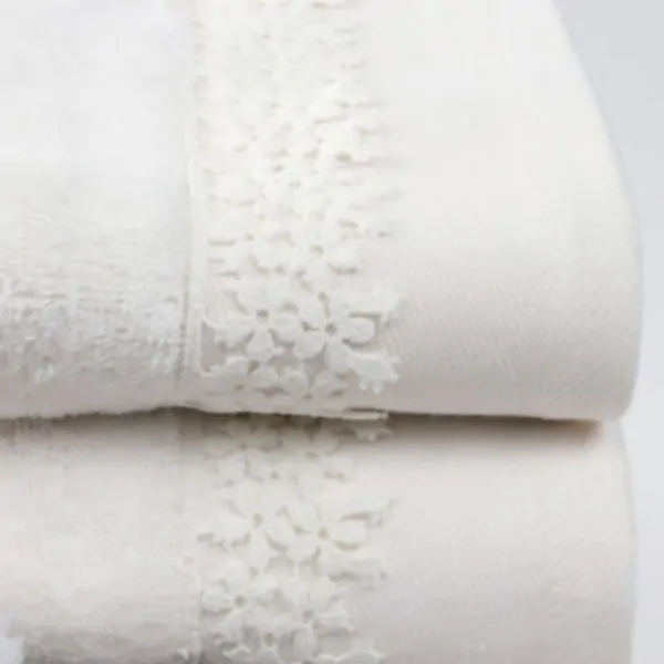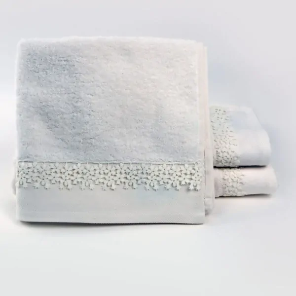 Handmade towel set made of 100% cotton terry lace, 500gsm. Liolios Home's Small Flower towels are soft and extra absorbent. They stand out for the wonderful texture as well as for the quality in their composition. Resistant to frequent washing with the color remaining unchanged. Hand, face and bath towels are available in the same design. It is a timeless and ideal choice of monochrome towel with a subtle embossed design and a lace pattern on the finish.