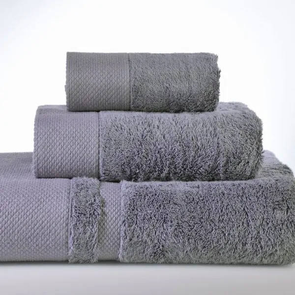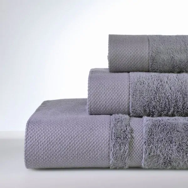Set of luxurious towels made of 70% Bamboo and 30% Cotton. The New Rosa series of the Greek company Down Town is distinguished by the quality of the threads, their absorbency and softness. Its composition makes it resistant to frequent use, with its color remaining unchanged. Hand, face and bath towels are available in the same design. It is a timeless and ideal choice of monochrome towel with a subtle embossed design on the finish.
