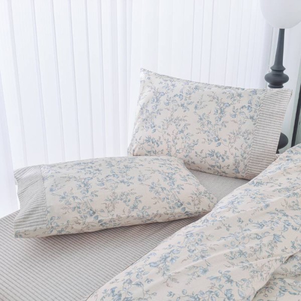 Σετ σεντόνια υπέρδιπλα από 100% Βαμβάκι Σατέν Πενιέ 220 κλωστών. Τα σετ σεντονιών Tamara της εταιρείας Liolios Home είναι κατασκευασμένα από βαμβακοσατέν πενιέ νήματα άριστης ποιότητας. Διαθέτουν απαλή υφή στο άγγιγμα ενώ ταύτοχρονα προσφέρουν μοναδικό αίσθημα χαλάρωσης. Πρόκειται για ένα κομψό σετ σεντονιών με εντυπωσιακά σιέλ λουλούδια και μπεζ ρίγα, ανθεκτικά στην καθημερινή χρήση και στον χρόνο.