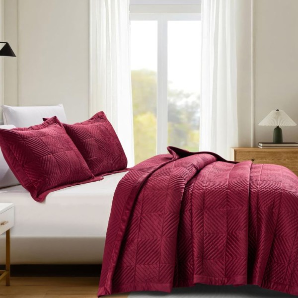 Το burgundy κουβερλί Palmira από την Liolios Home χαρίζει στιλ και την χαλάρωση που επιθυμείτε στο υπνοδωμάτιο σας. Είναι κατασκεuασμένο από 100% luxury velvet, υψηλής ποιότητας που το καθιστά ιδιαίτερα απαλό με καπιτονέ κέντημα. Φιλικό προς το δέρμα, επιτρέπει στο σώμα να αναπνέει χωρίς να το ηλεκτρίζει. Η συγκεκριμένη συλλογή ξεχωρίζει για τα φίνα σχέδια της καθώς και για τις κομψές αποχρώσεις. Χαρίστε αρμονία και αίσθηση πολυτέλειας στο υπνοδωμάτιο σας με το σετ κουβερλί Palmira με μαξιλαροθήκες στο ίδιο χρώμα και διαστάσεις 50Χ70cm.