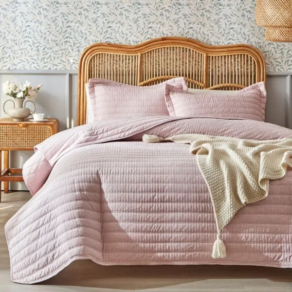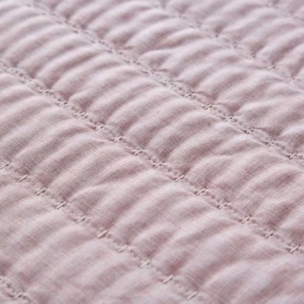 Μονόχρωμο κουβερλί στην απόχρωση του ροζ με υπέροχο κομψό καπιτονέ κέντημα. Είναι κατασκευασμένο από 100% cationic/melange.