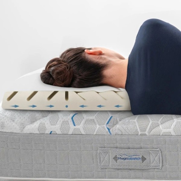 Το Magnistretch ®, της ιταλικής εταιρείας MAGNIFLEX, είναι ένα μαξιλάρι, που προσφέρει ιδανική στήριξη στην αυχενική σπονδυλική στήλη και τους ώμους, το μοναδικό με αποδεδειγμένα κλινικά αποτελέσματα στην ανακούφιση πόνου, στη μείωση της μυϊκής έντασης, στη διάταση της αυχενικής περιοχής και στη βελτίωση της ανάρρωσης. Κατά τη διάρκεια της ανάπαυσης, το βάρος του κεφαλιού ενεργοποιεί ένα σύστημα κεκλιμένων εσωτερικών σανίδων που τεντώνουν απαλά την αυχενική περιοχή, από τους ώμους μέχρι τον αυχένα, δρώντας σε βάθος. Με το καινοτόμο υλικό Memoform® που προσαρμόζεται στο περίγραμμα του αυχένα, εξαλείφει τα σημεία πίεσης και προσφέρει μια ευχάριστη άνεση «μηδενικής βαρύτητας».